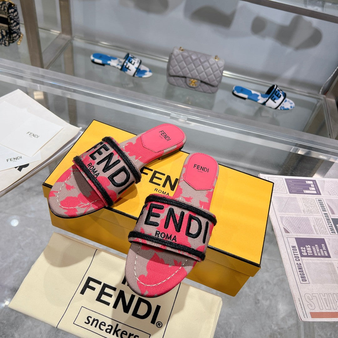 FF Women Signature Slides Dark Pink Gray Canvas Slide