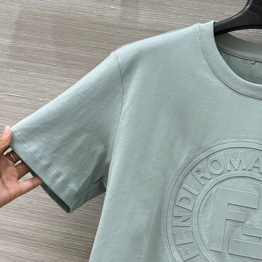 Fendi 25 Embossed Letter T-shirt Ice blue Cotton