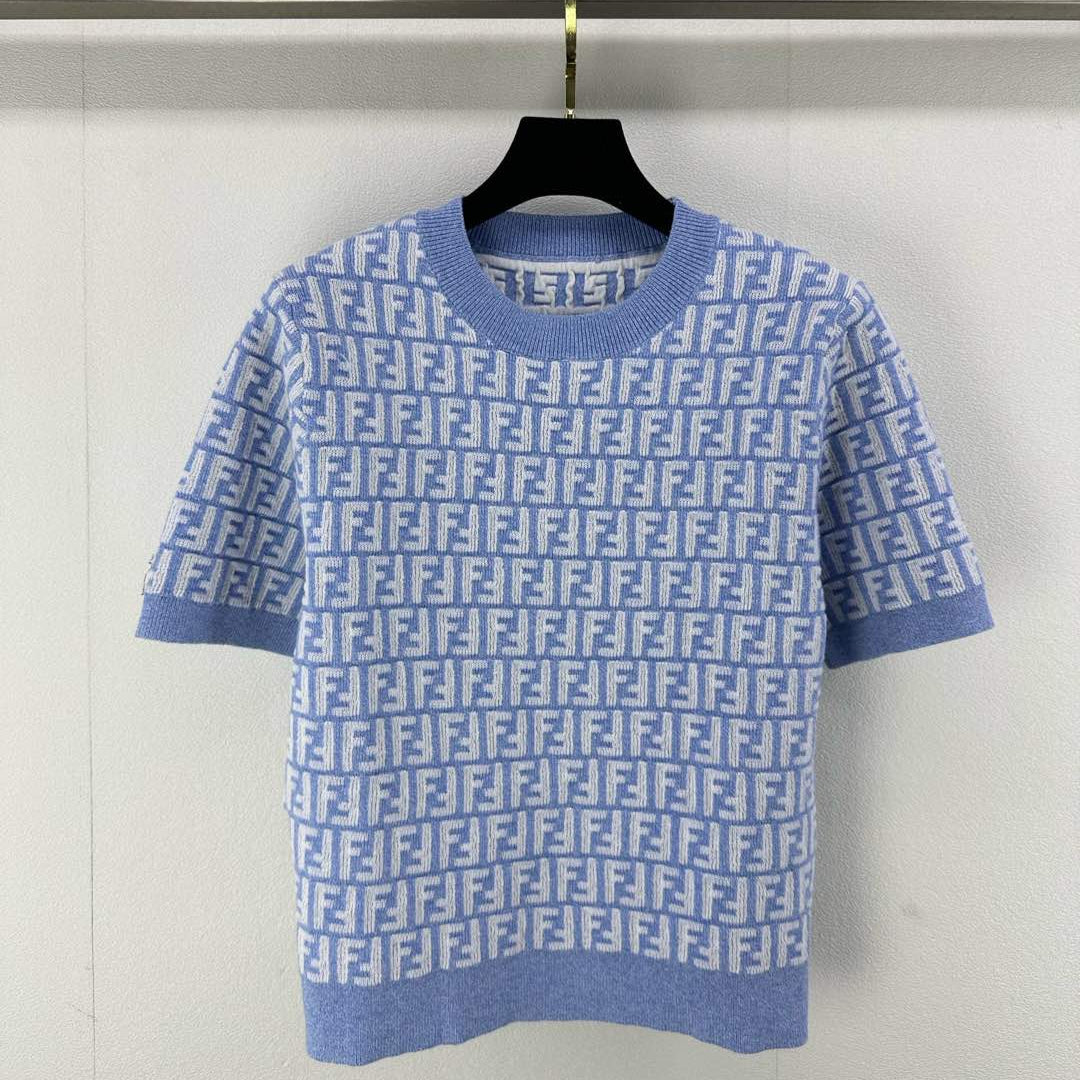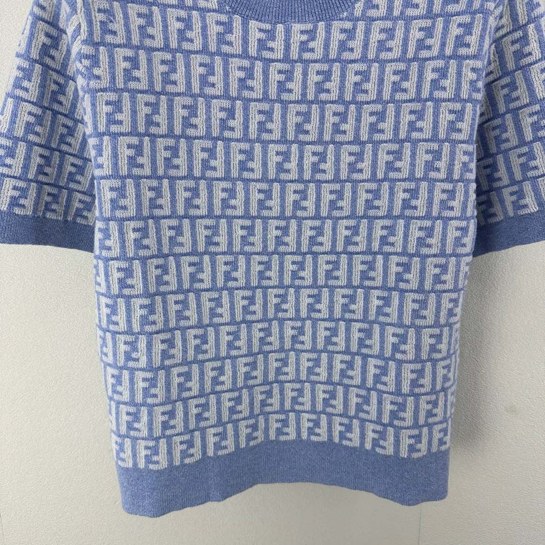 Fendi 25 Knitted Round Neck Short Sleeves Blue Wool F155