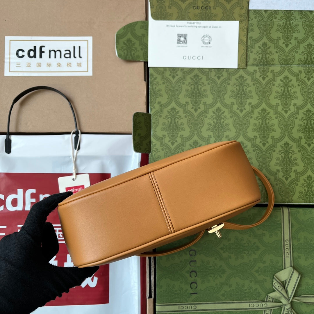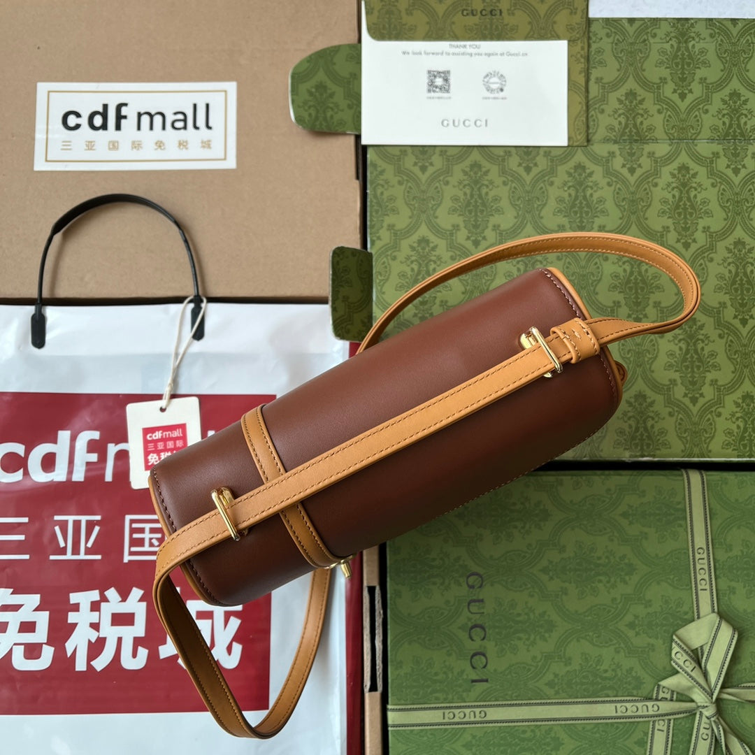 EQUESTRIAN STYLE SHOULDER BAG 21 IN BROWN CALFSKIN GOLD HARDWARE