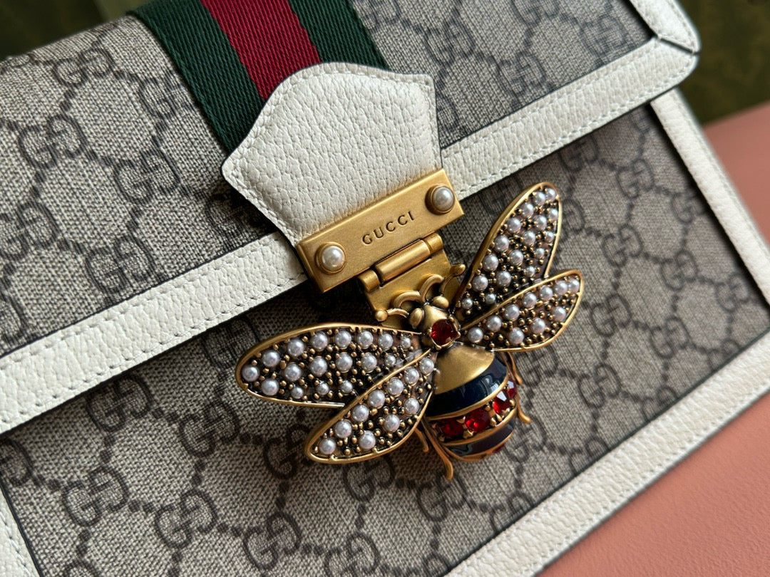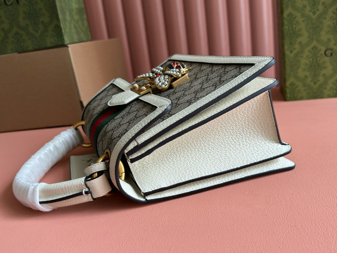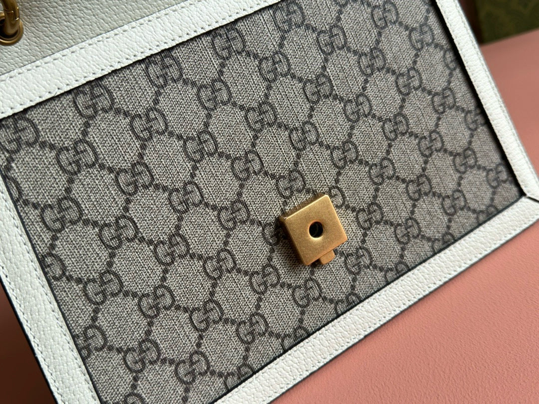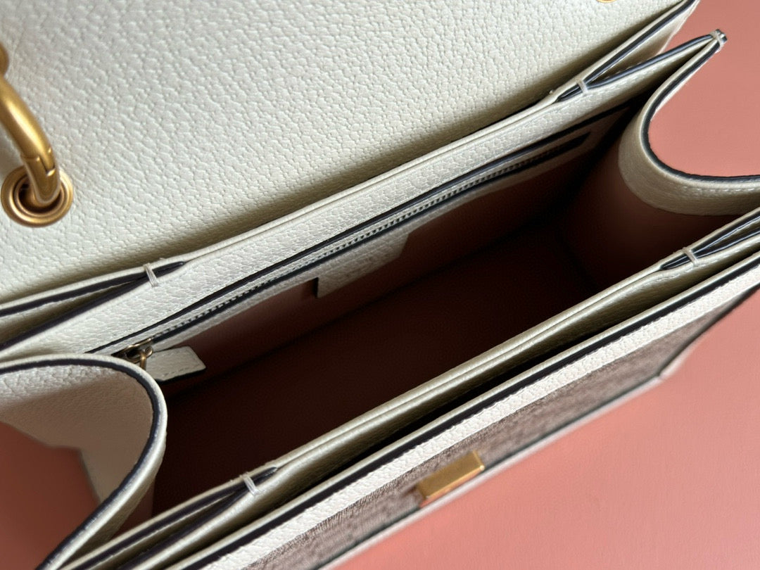GG MINI 25 HANDBAG IN BEIGE CANVAS AND WHITE CALFSKIN