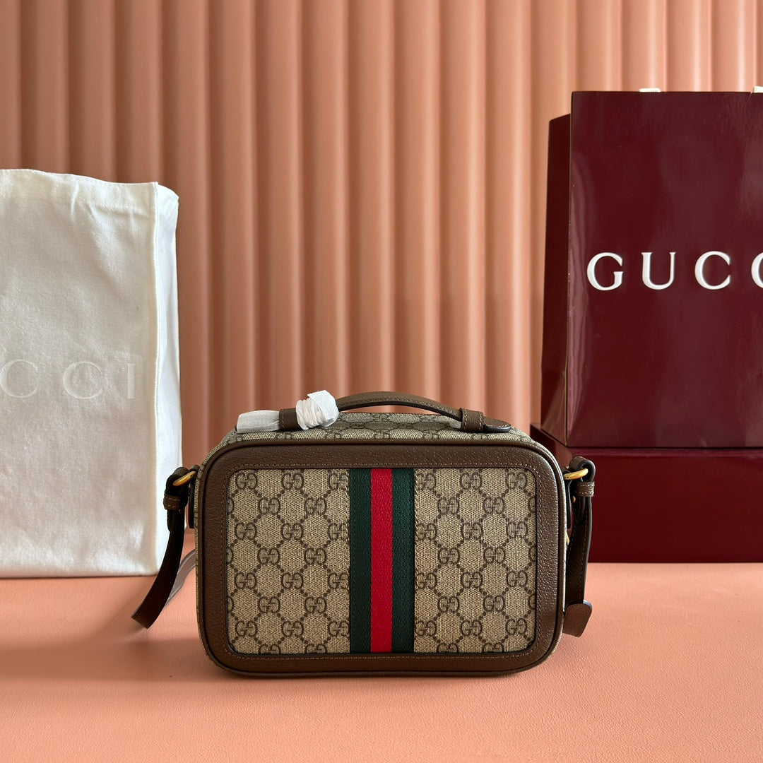 GG Ophidia Small Crossbody Bag Beige & Dark Brown GG Monogram Fabric 272074
