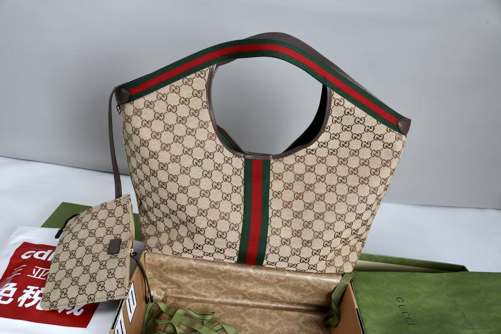 Gucci Giglio Large Tote Bag Beige and Red Denim