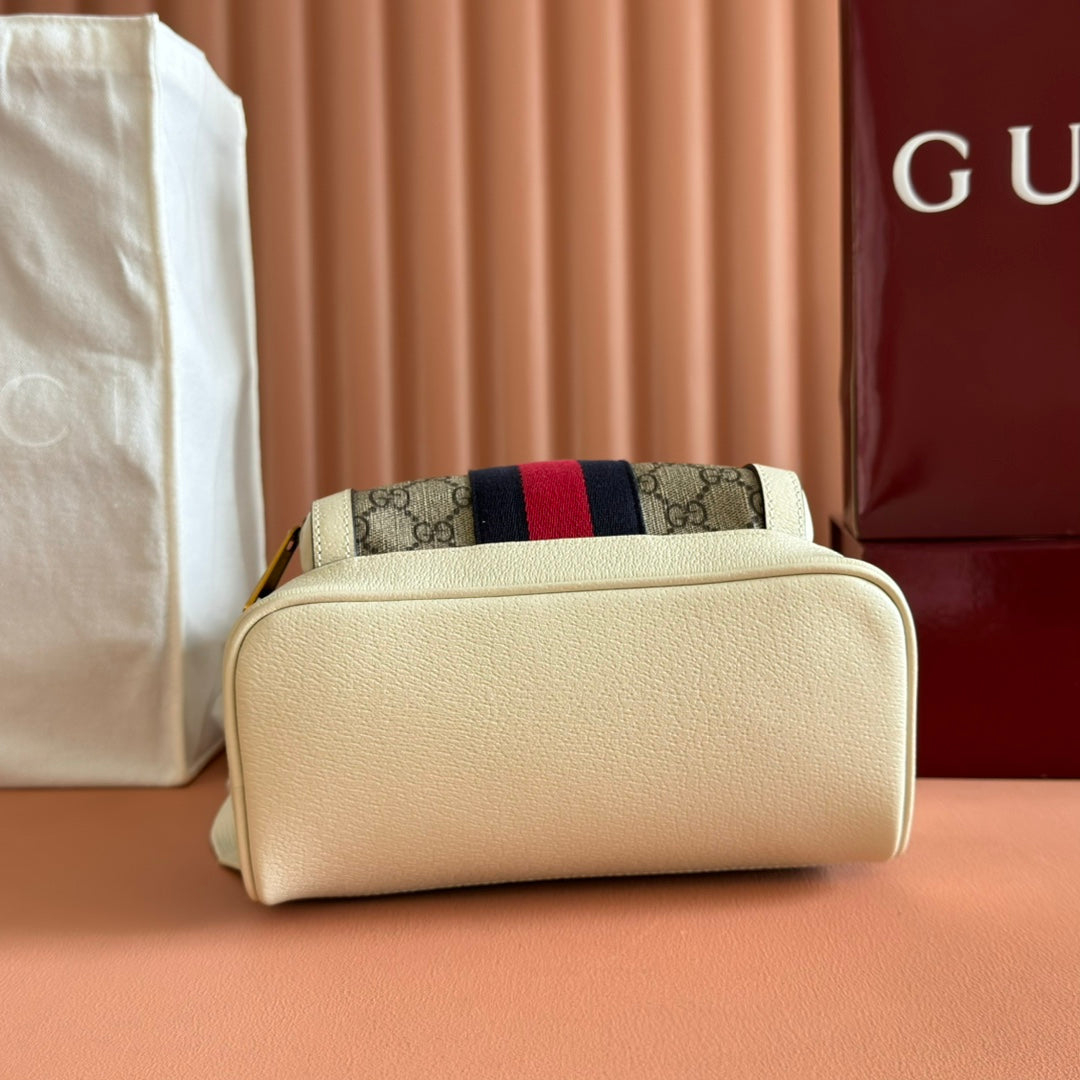 GG Small Ophidia Backpack Beige & White GG Monogram Fabric 272186