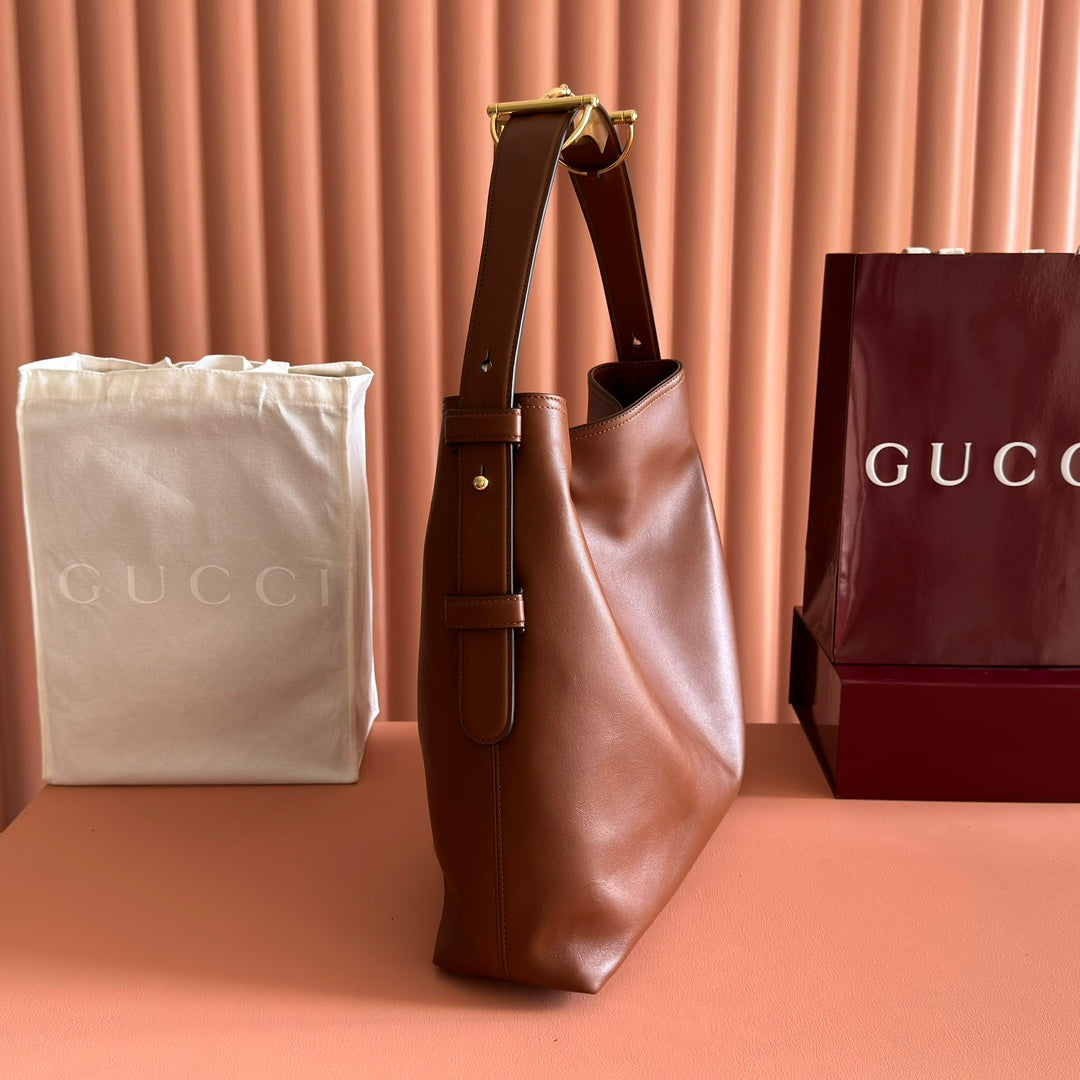 Gucci 25 Softbit 46cm Brown Gold Suede Leather 290512