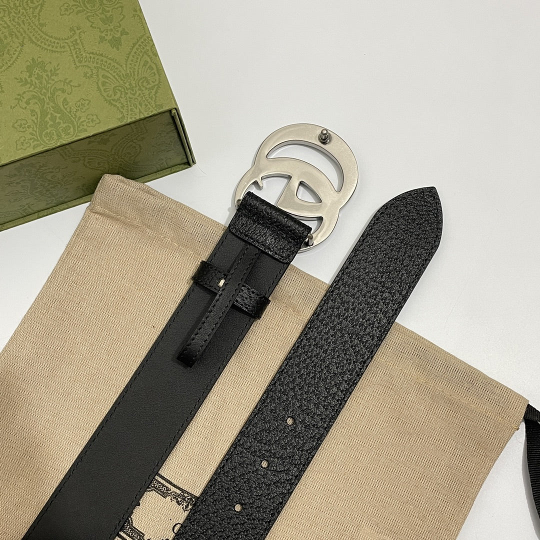 DOUBLE G SILVER BUCKLE 40MM BLACK LEATHER