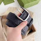 GC BELT SILVER BUCKLE IN GG SINK LEATHER 4.0CM