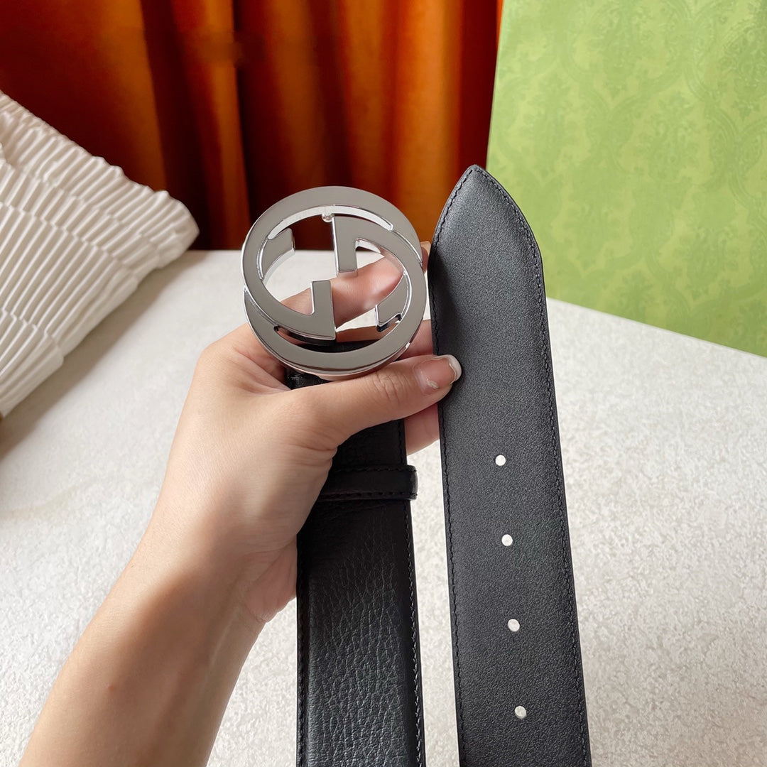 GG BELT INTERLOCKING G BUCKLE BLACK LEATHER