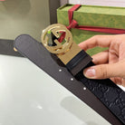 INTERLOCKING G GOLD BUCKLE 37MM BLACK BROWN LEATHER