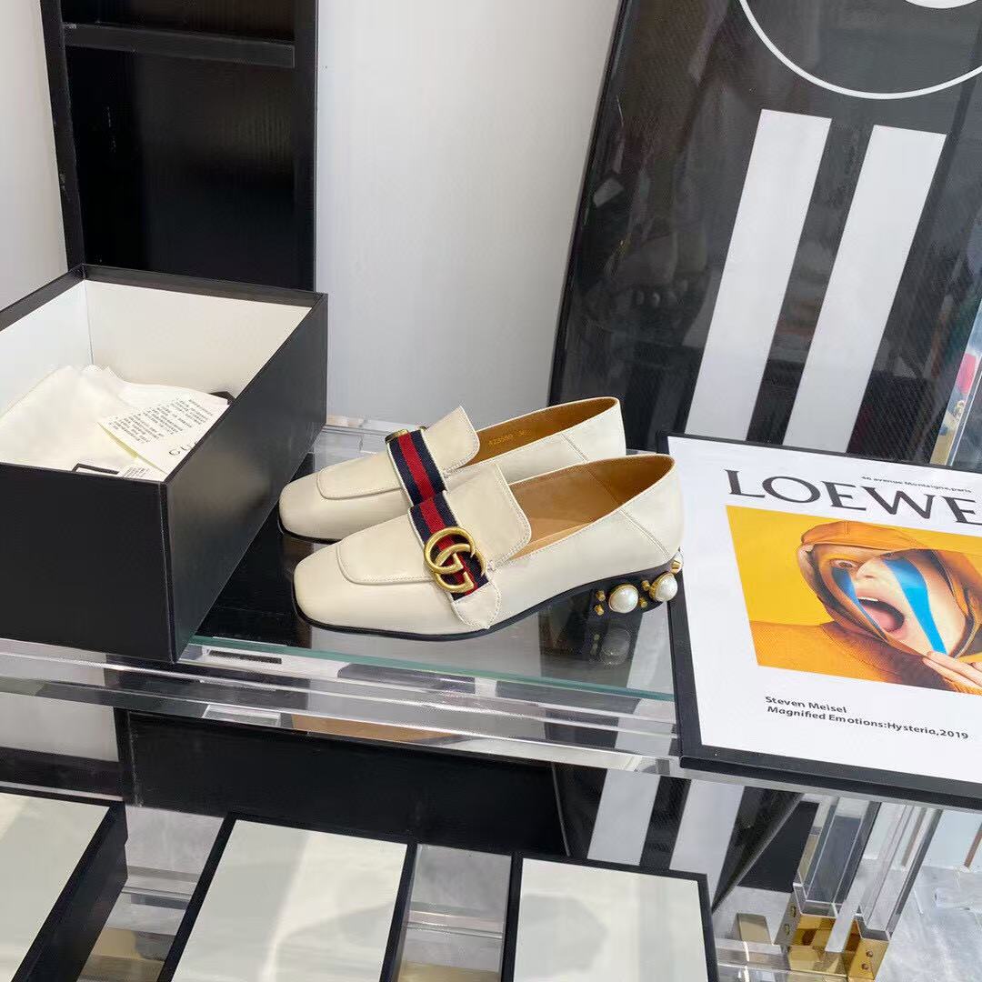 GG Pearl Embellished Block Heel Loafer 40mm White Leather GHW