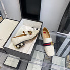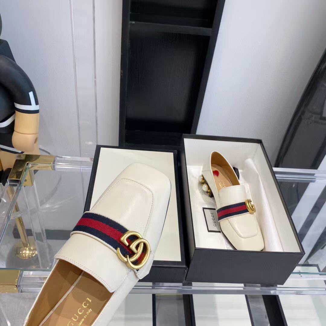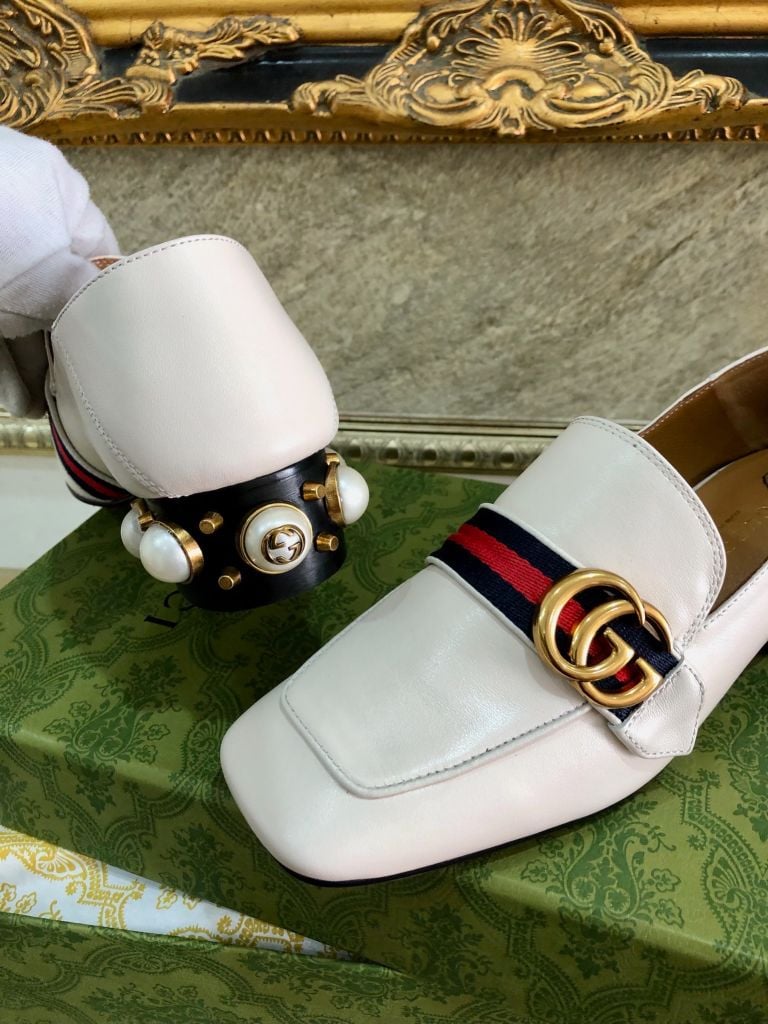 GG Pearl Embellished Block Heel Loafer 40mm White Leather GHW