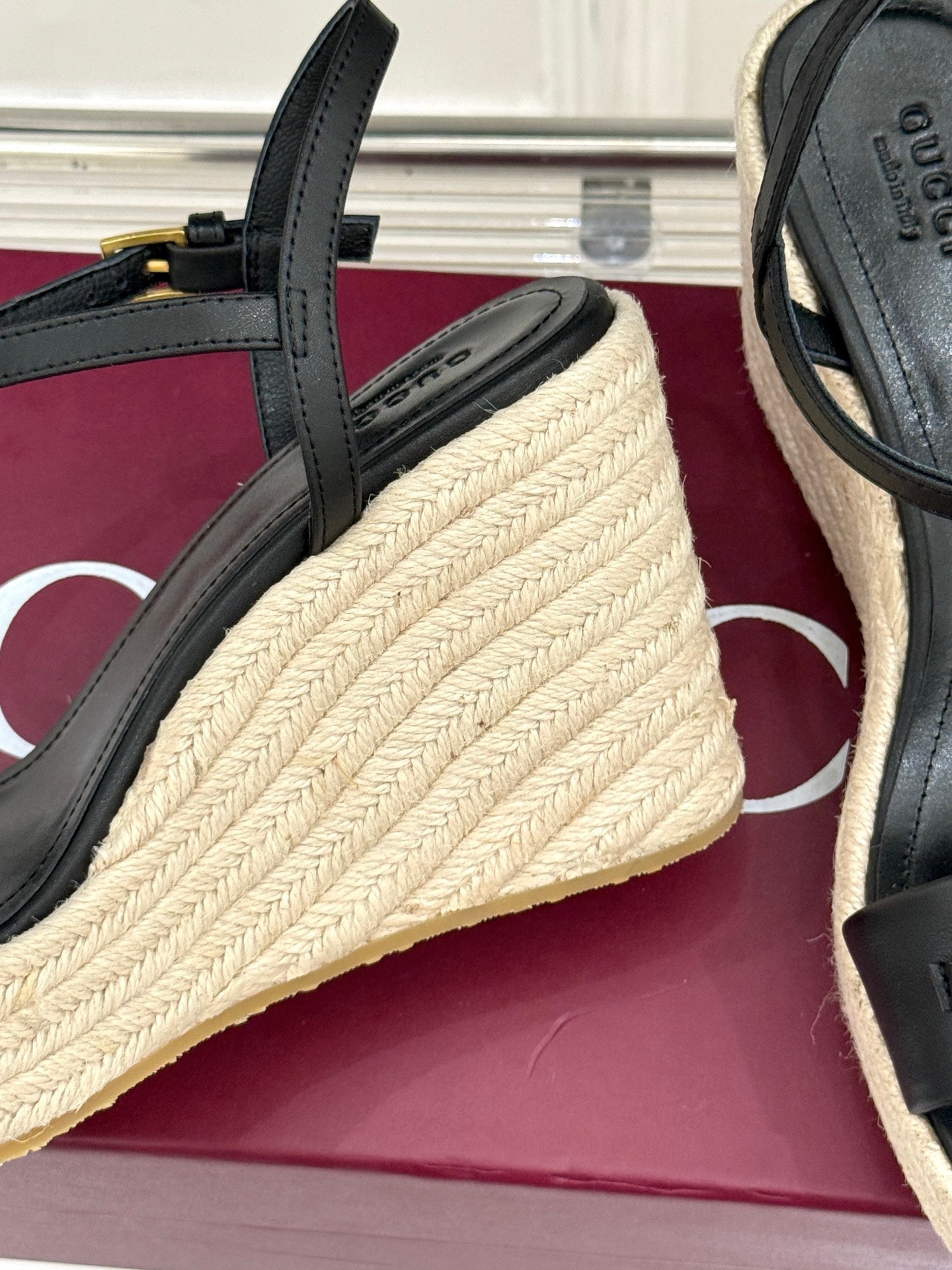 GC Floral Platform Wedge Sandal Black lambskin