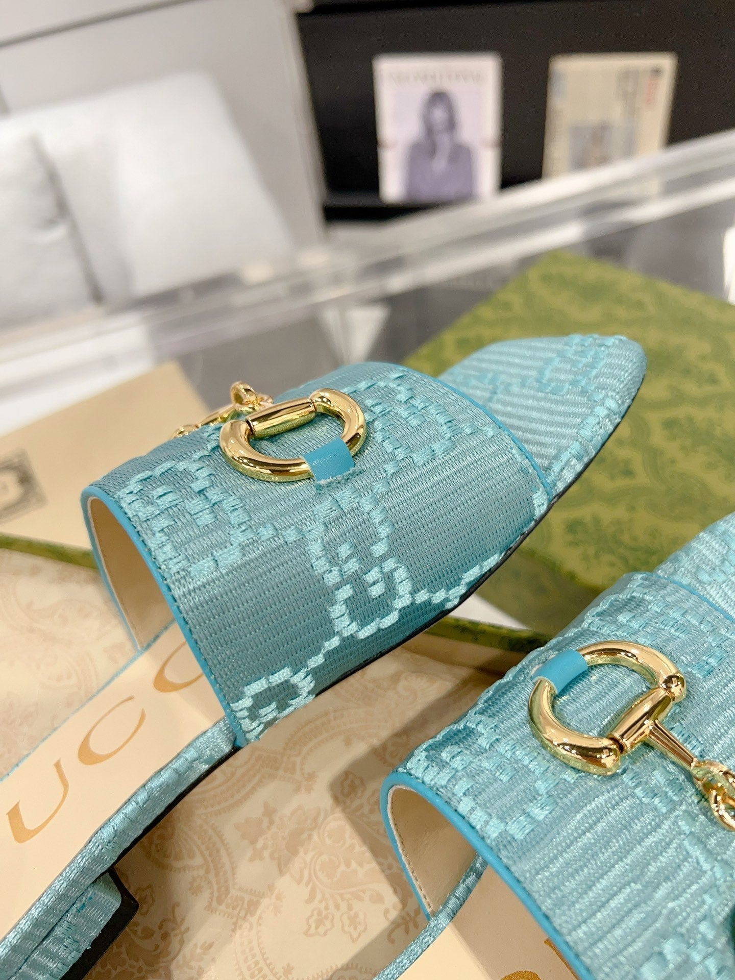 GG CHUNKY SLIDE SANDAL BLUE SKY CALFSKIN