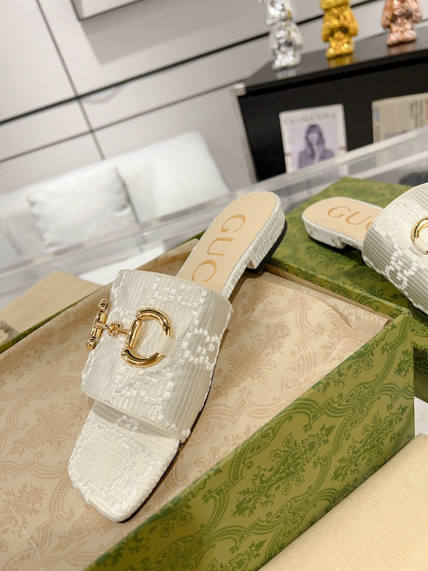 GG CHUNKY SLIDE SANDAL SILVER CALFSKIN