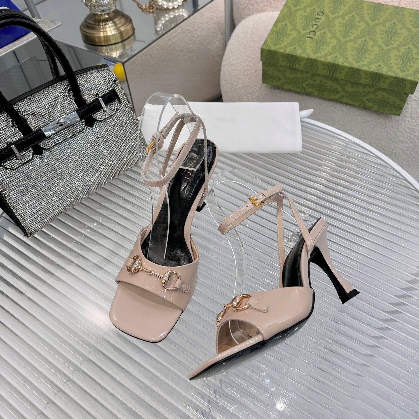 GG Gold Buckle Sandal 80mm Beige Patent Leather 457557