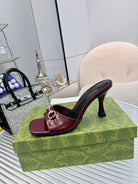 GG Gold Buckle Slide Sandal 80mm Burgundy Patent Leather 457566