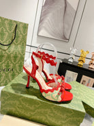 GG HIGH - HEEL SANDAL CRIMSON FABRIC ATTACH BOW