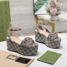 GG Horsebit Wedges Sandals Light Grey