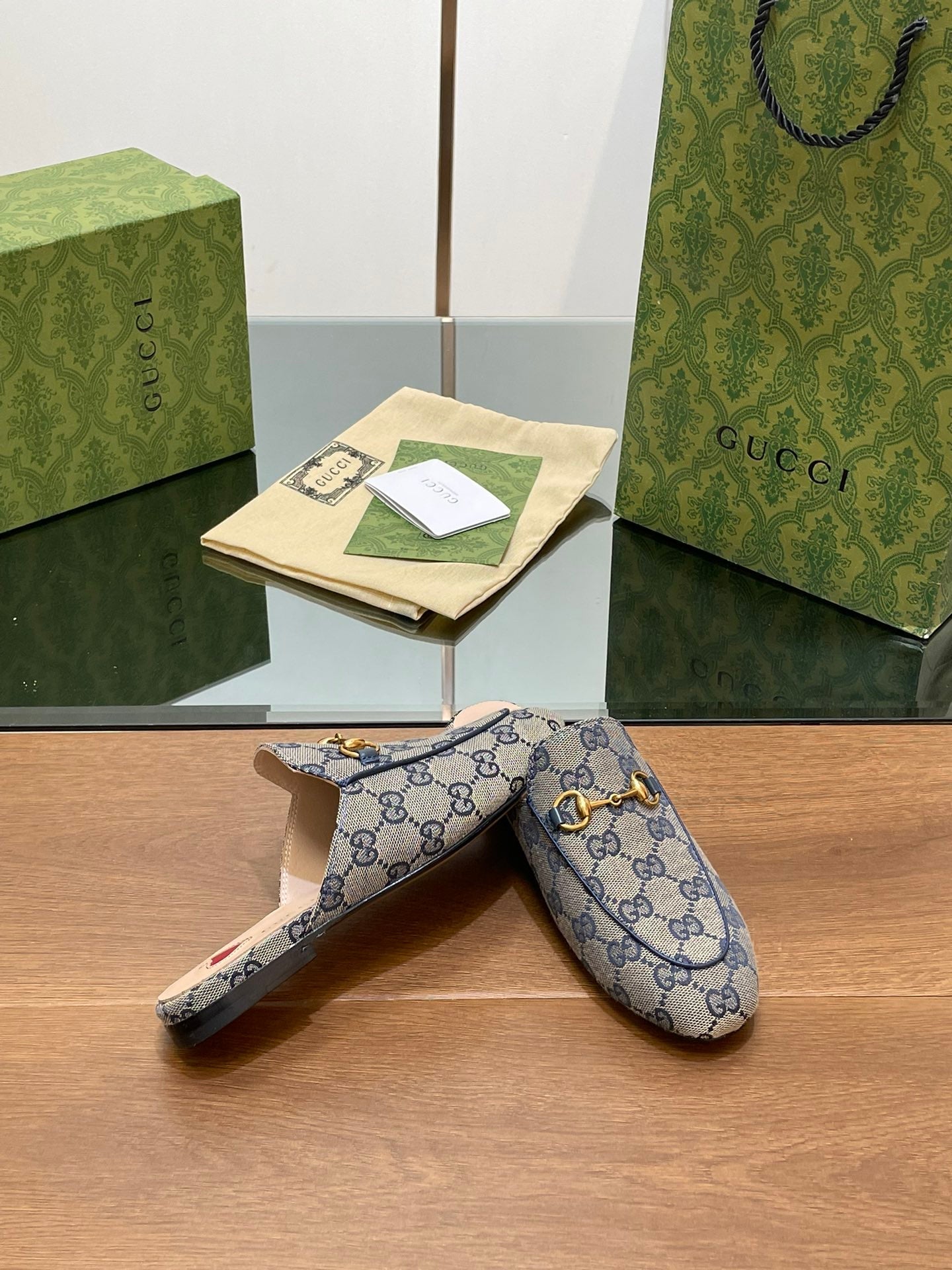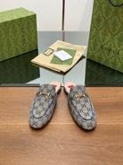 GG PRINCETOWN MULES LIGHT GRAY FABRIC