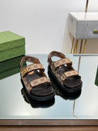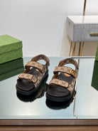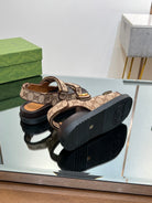 GG SANDAL WITH DOUBLE G PECAN CARO LAMBSKIN