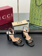 GG Women Horsebit Embossed High Heel Sandal Open Toe Black Sheepskin 149221