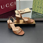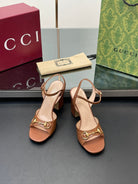 GG Women Horsebit High Heel Sandal Open Toe Gold Sheepskin 149211