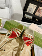 HIGH HEEL 65MM IN LIGHT GOLD CALFSKIN WITH RED HEART