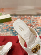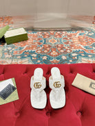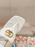 HIGH THONG MULE 55MM IN WHITE CALFSKIN WITH GOLD HARDWARE