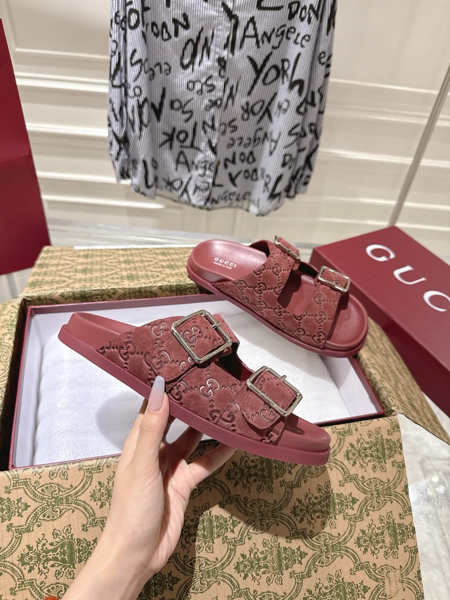 SANDALS IN NAVY RED SUEDE EMBOSSED LOGO SILVER HARDWARE