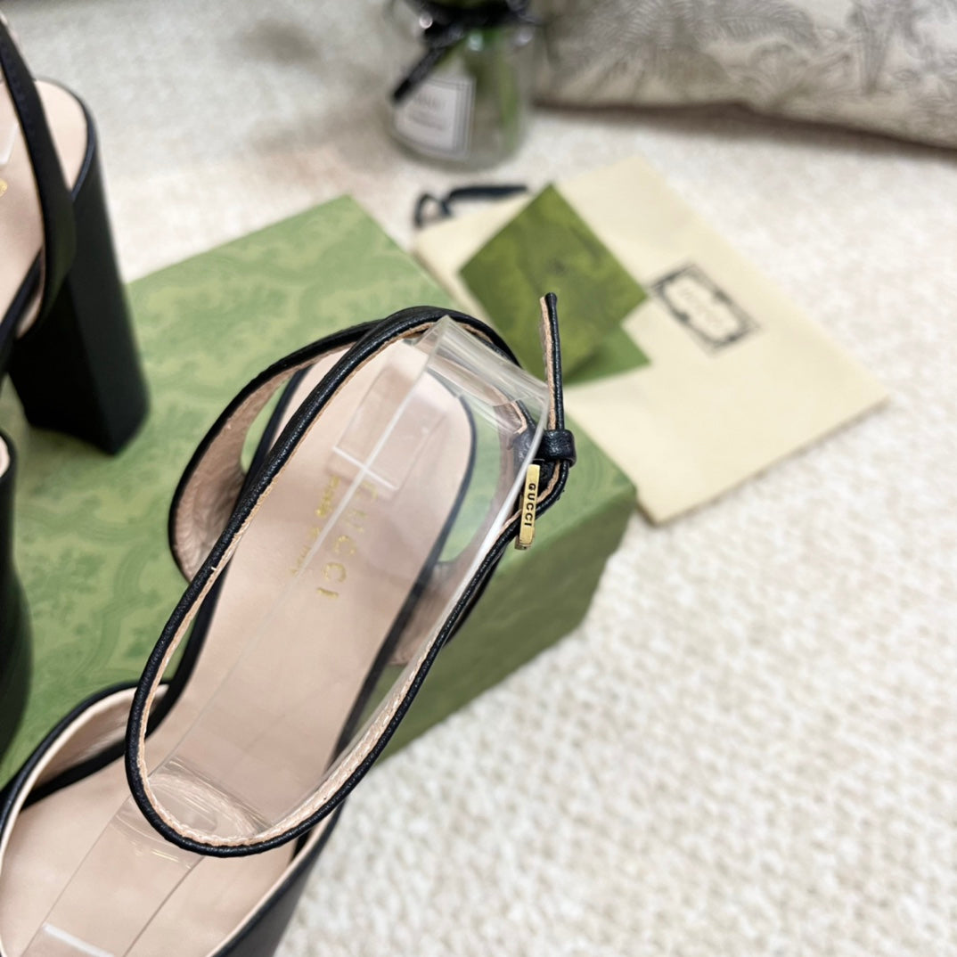 GG Platform Black Heel 105 Sandal Red Calfskin Beige Raffia