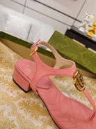 GC Double G Block Heel Thong Sandals Pink Leather 292409