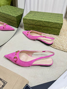 GC Horsebit Slingback Pump 10mm Pink Canvas Sheepskin 294543