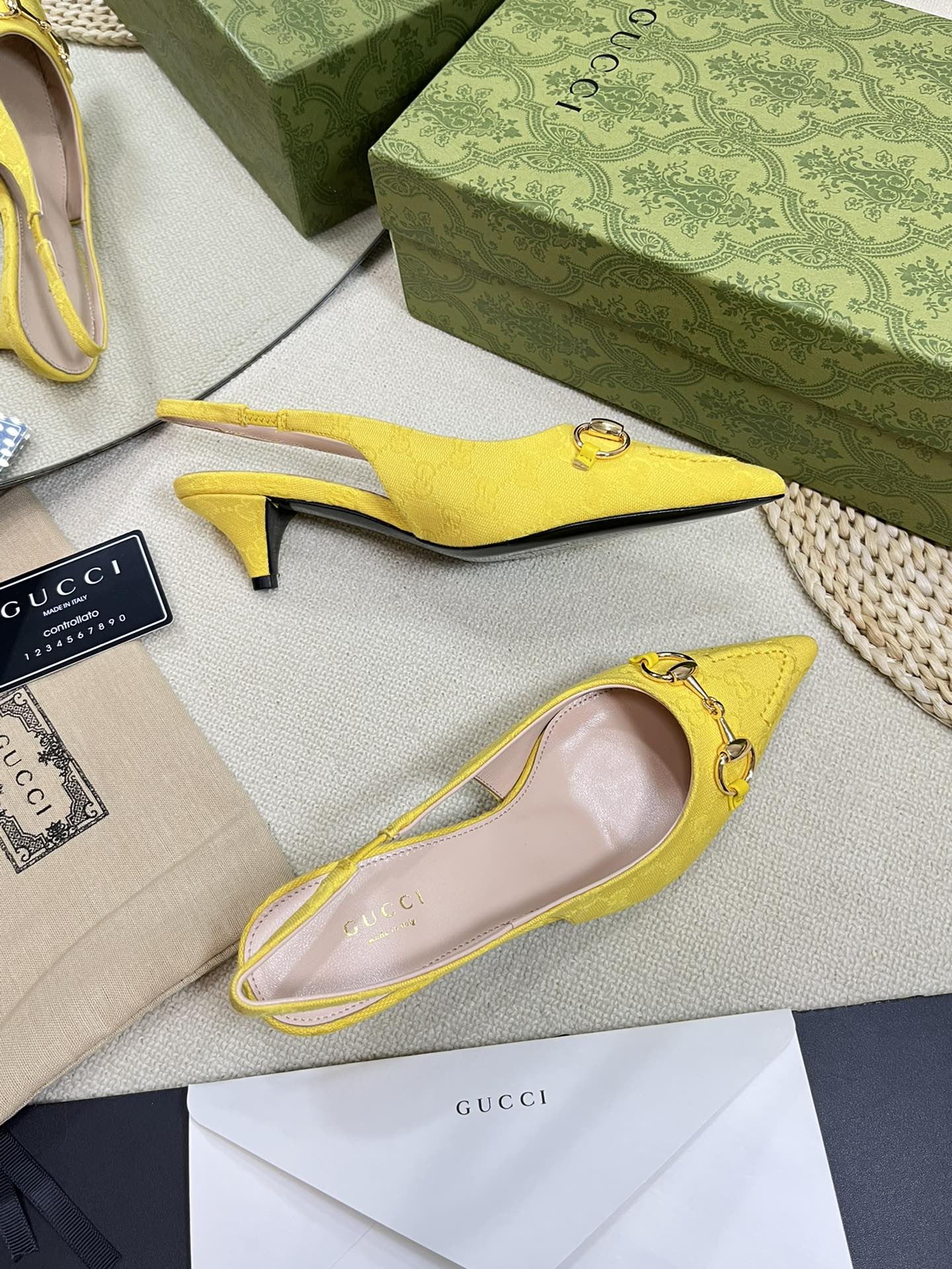 GC Horsebit Slingback Pump 50mm Yellow Canvas Sheepskin 294545
