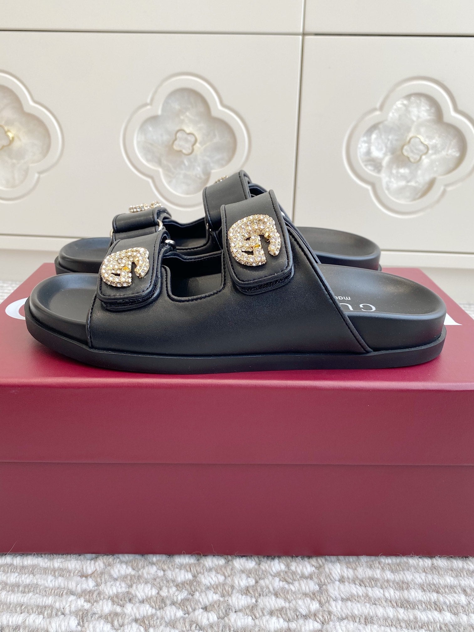 GC sandal with Double G Black Calfskin 291025