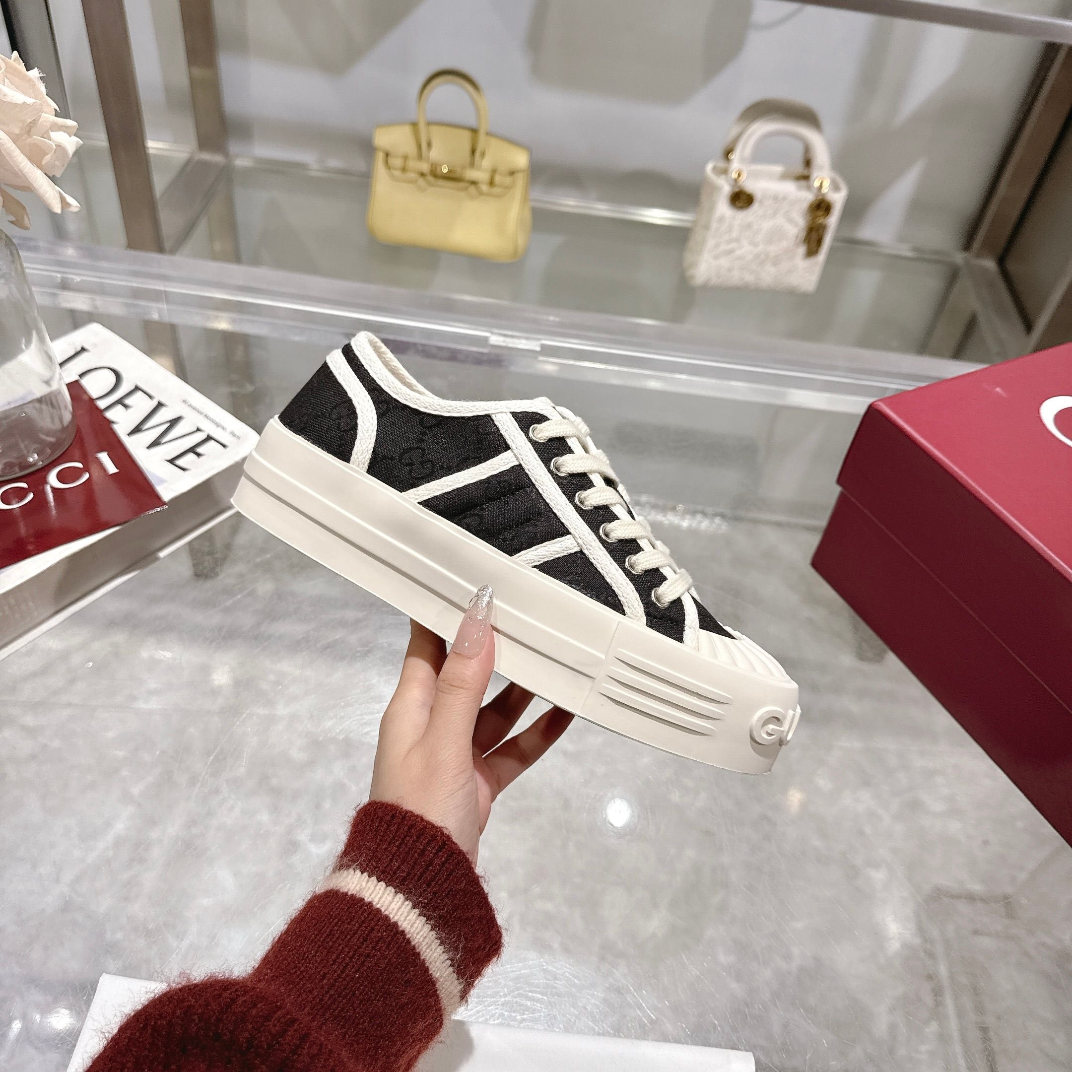 GG Chunky Sneaker 35mm Black White Canvas 457444