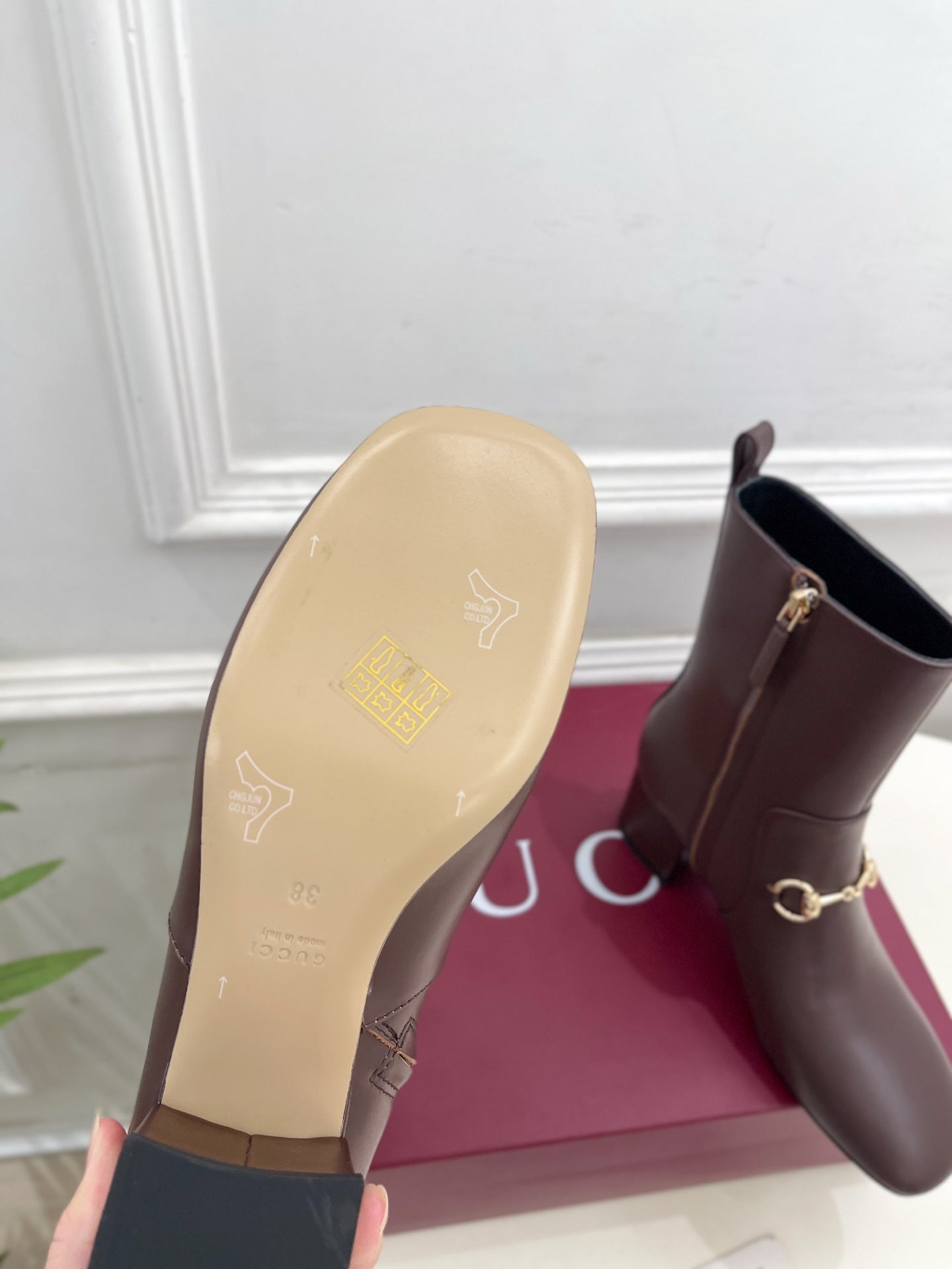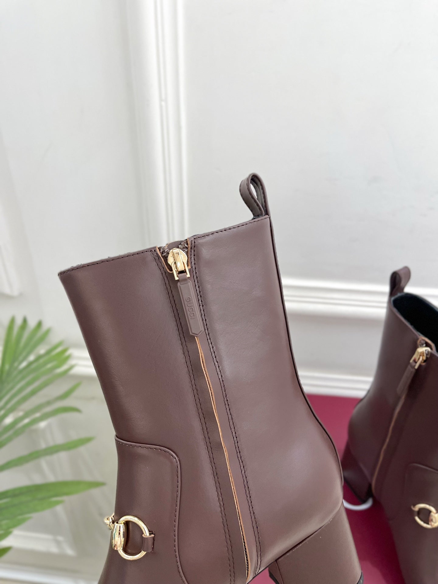 GG horsebit chunky heel ankle boots dark brown calfskin 536058