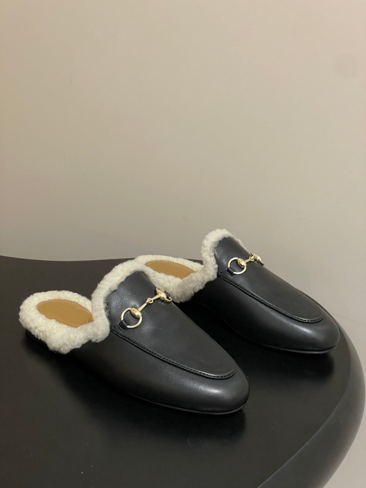 GG horsebit flat mules black cowhide 534713