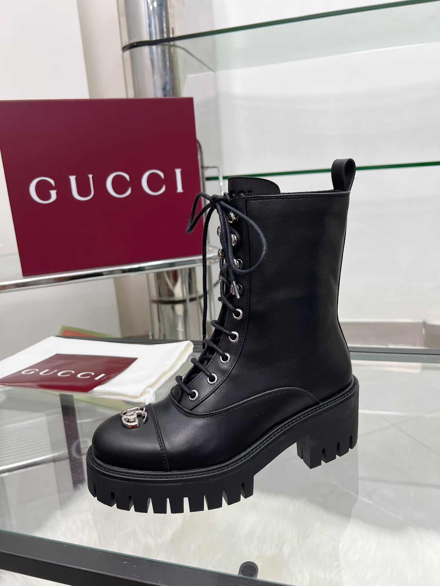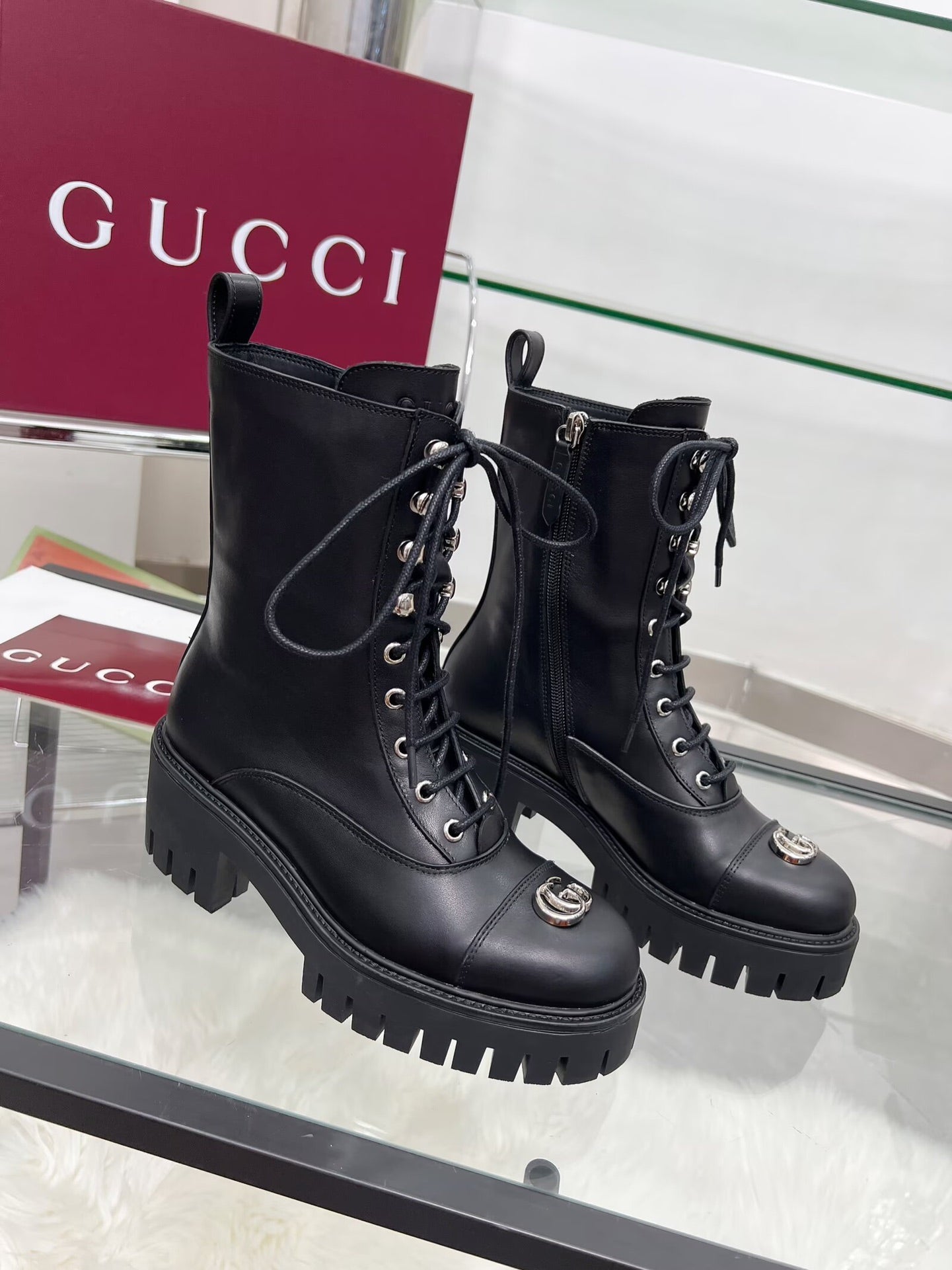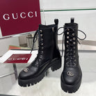 GG Platform Combat Boots Black Cowhide 476792