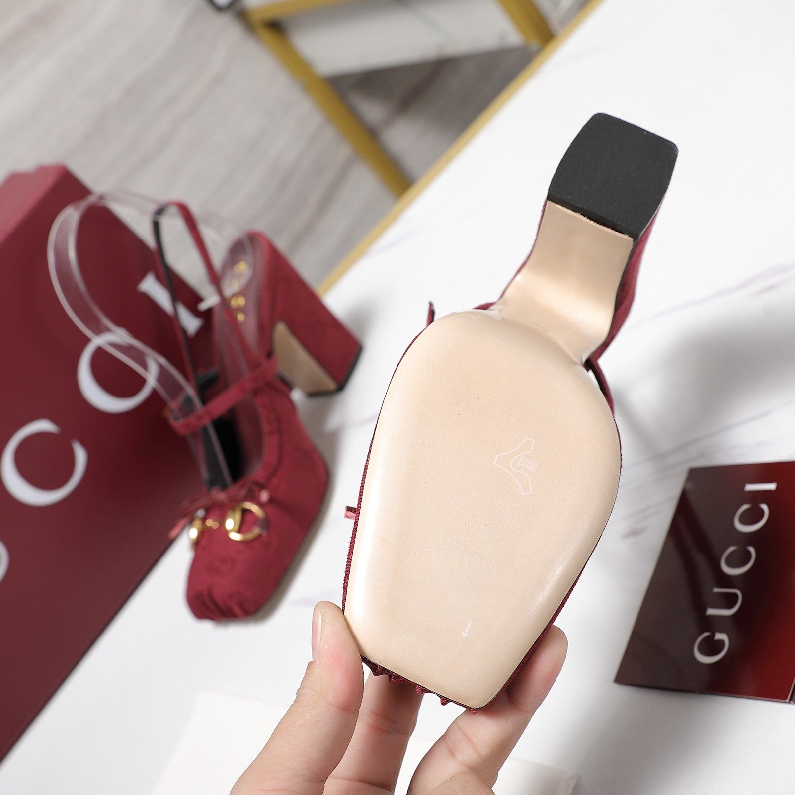 Gucci Horsebit Slingback Pumps Burgundy Jacquard Canvas 504426