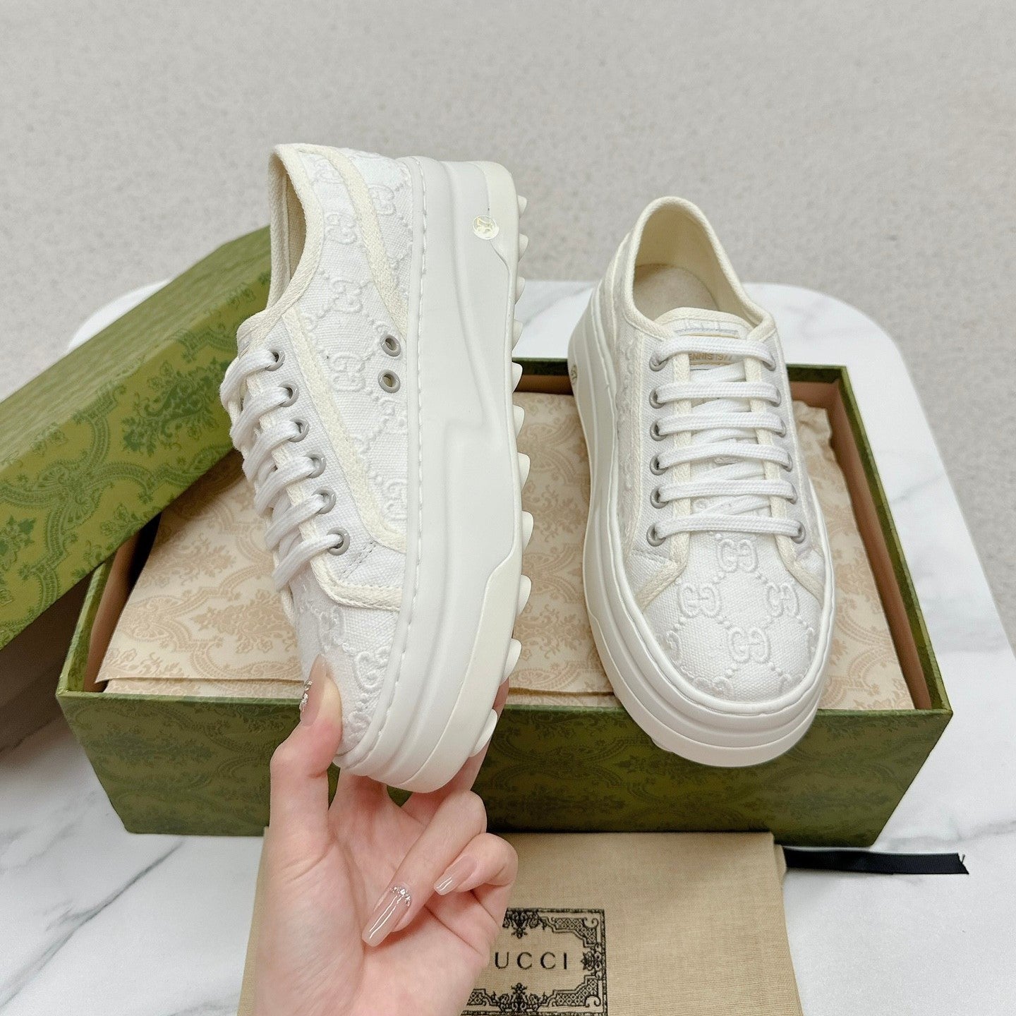 GG Low Top Sneakers 50mm White Canvas 457429