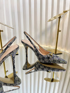 GC Crystal Horsebit Slingback 100mm Beige mix Blue Canvas lambskin 294619