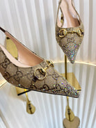 GC Crystal Horsebit Slingback 50mm Beige mix Ebony Canvas lambskin 294617