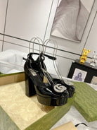 GG CRYSTALS PLATFORM PUMPS BLACK CALFSKIN