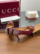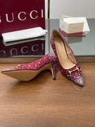 GG Horsebit Pump 85 Red Ebony Monogram Canvas Crystal-Embellished