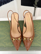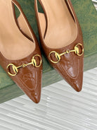 GG Horsebit Slingback 85MM Brown GG Leather Point Toe