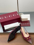 GG Horsebit Slingback Flat Red Ebony Monogram Canvas Point Toe Crystal-Embellished