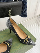 GG Pump 85 Black Ebony Canvas Crystal-Embellished