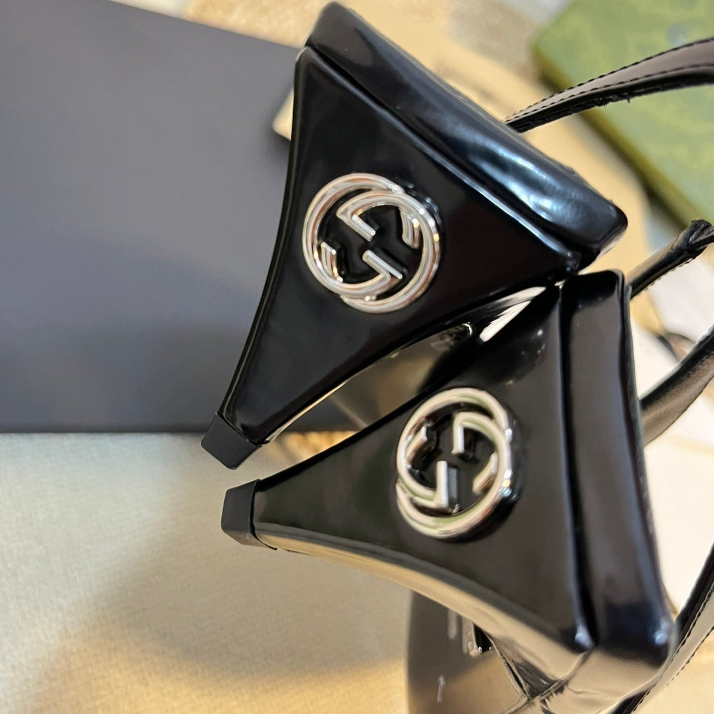 • Fabric: Imported patent leather / stone grain cowhide