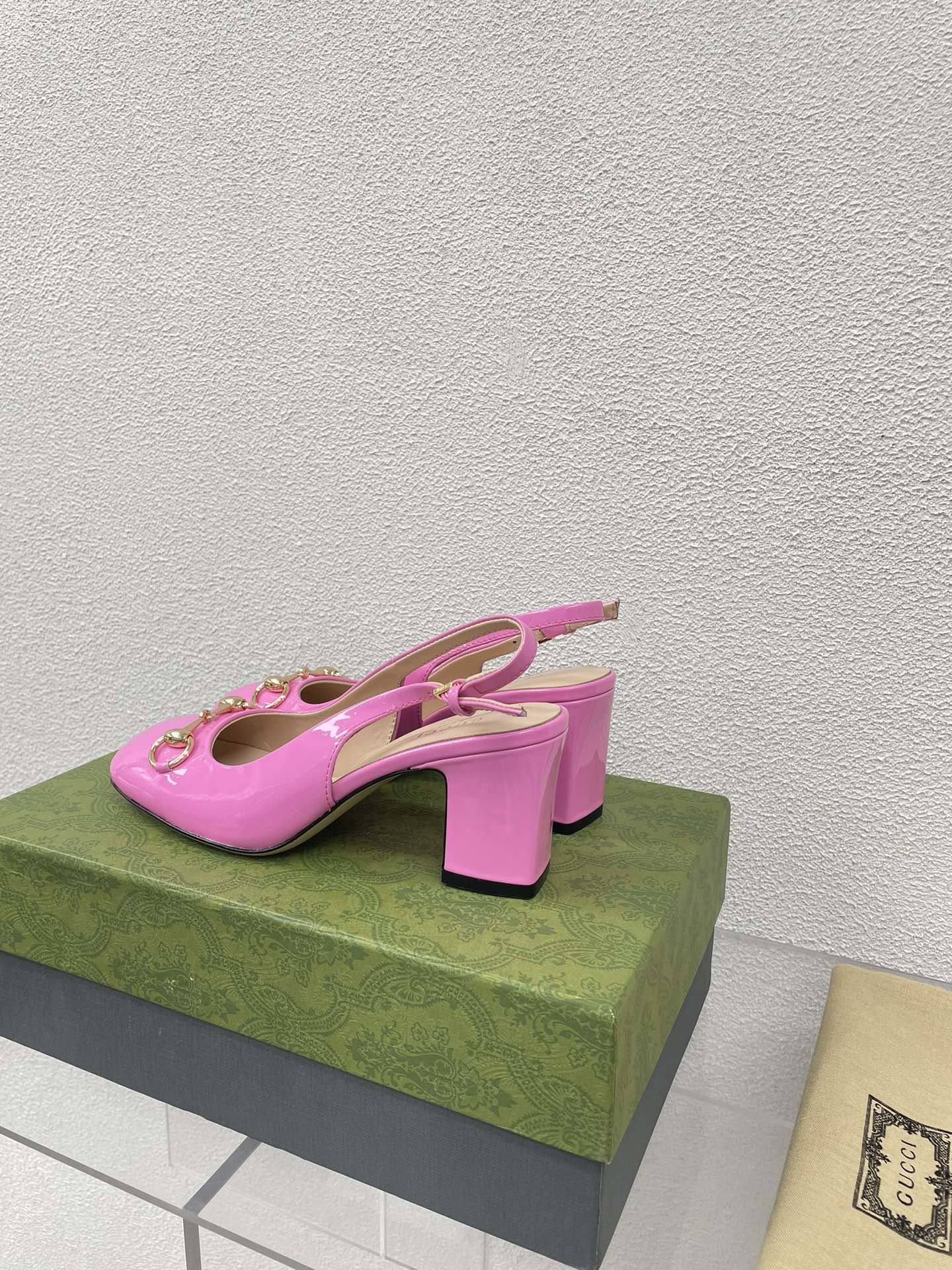 GG WOMEN'S HORSEBIT SLINGBACK 65MM IN FUSICA PINK CALFSKIN