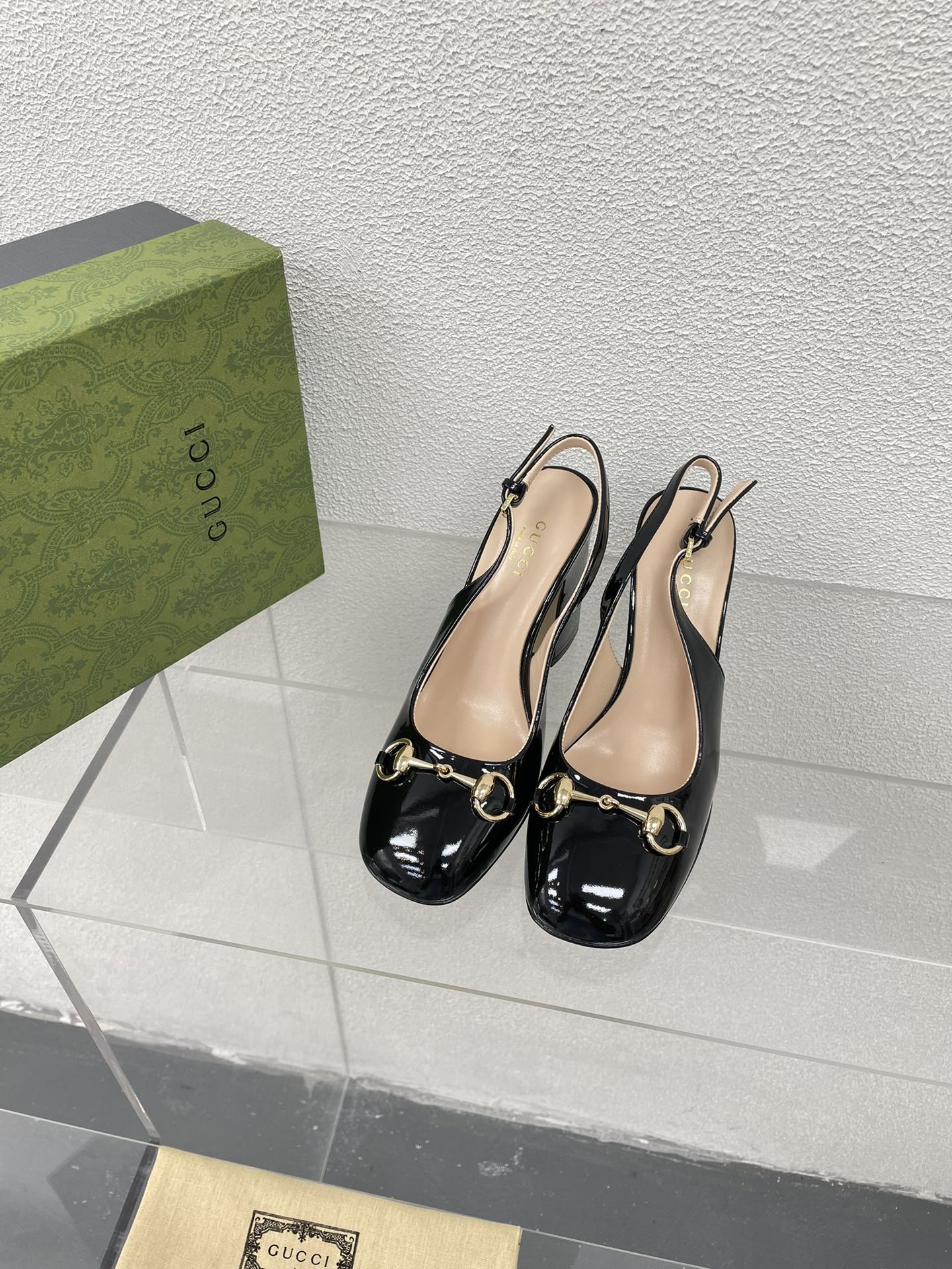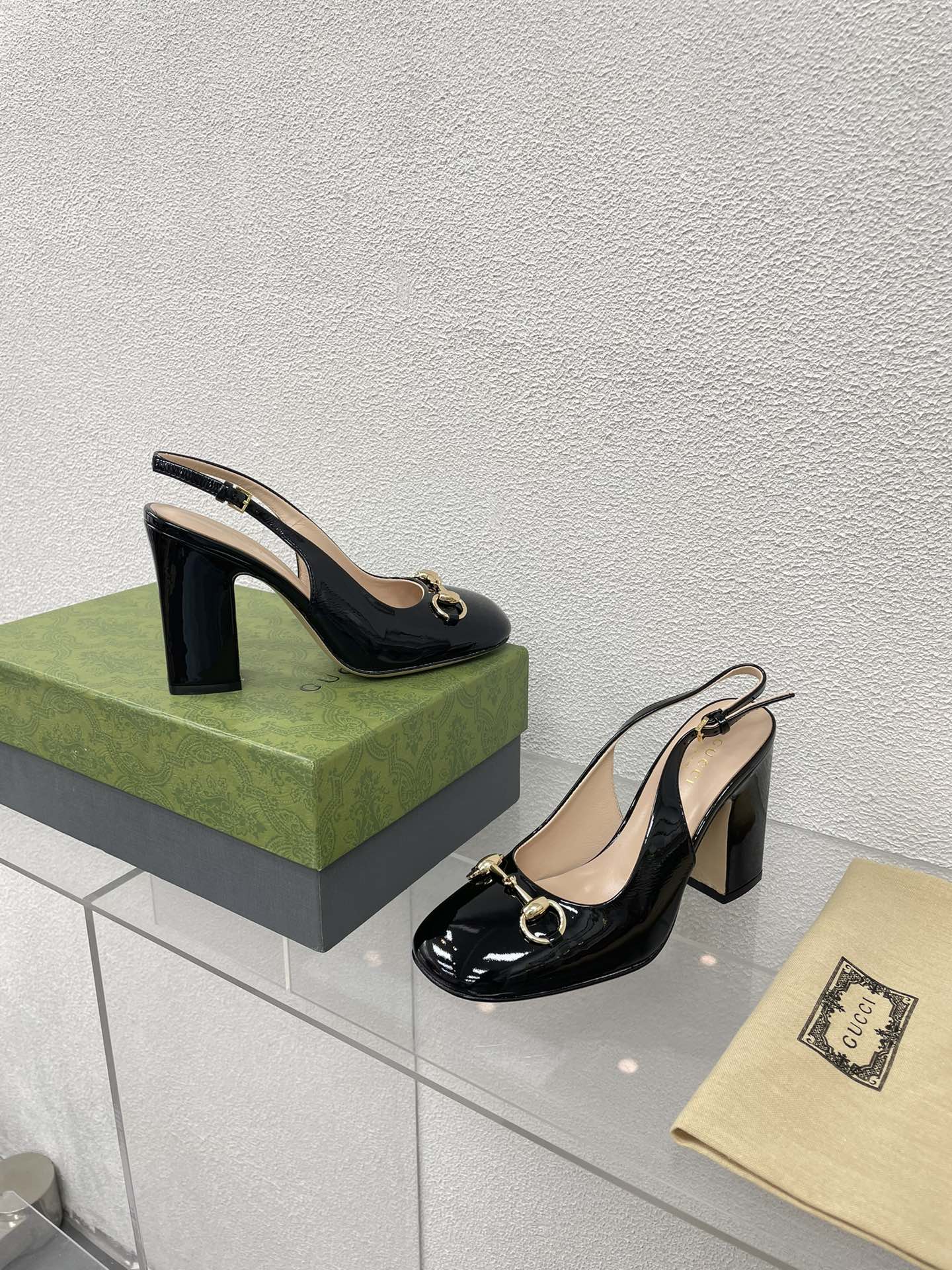GG WOMEN'S HORSEBIT SLINGBACK 95MM IN BLACK CALFSKIN